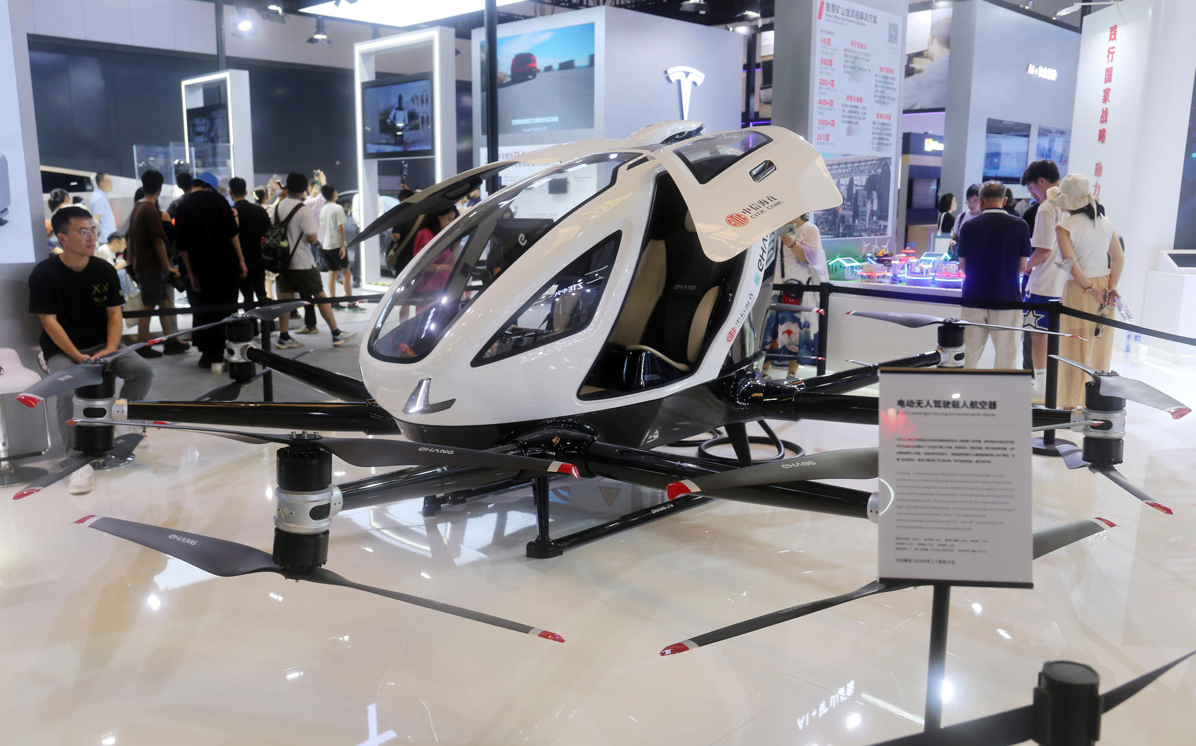 ▲中信海直的新款电动无人驾驶载人低空飞行器 图据视觉中国